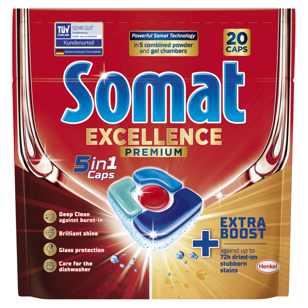 Při neustálém kolotoči návštěv a příprav různých dobrot na vánoční tabuli se může stát, že zapomeneme na naše největší pomocníky – kuchyňské spotřebiče. Tím největším je rozhodně myčka, kterou můžou trápit zbytky jídla a další usazeniny. S novými kapslemi Somat Excellence 5v1 to už nebude problém. První pětikomorové kapsle na trhu v sobě spojují prášek a gel s extra posilovačem, který si poradí s usazenou mastnotou i připálenými zbytky jídla zaschlými až 72 hodin. Kapsle Somat Excellence 5v1 se rychle rozpouštějí a čistí nádobí i při ECO programech. Díky tomu máte jistotu, že se před každou sváteční návštěvou doslova blýsknete dokonale čistým nádobím.